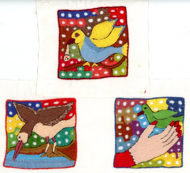 Birds – varied in colour and form – some as nature made them, some born of fantasy, captured in squares or flying freely on the fabric. Afghans love birds, as you can tell from the embroideries by the women of Laghmani. Enjoy with us this concert of singing birds throughout the year!