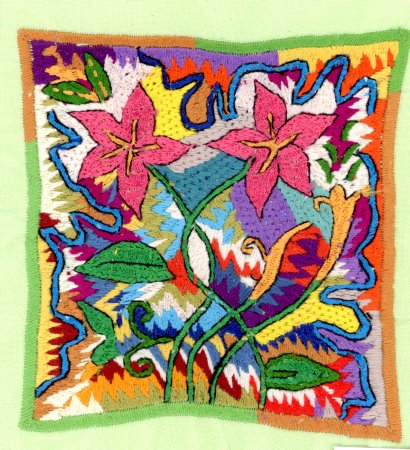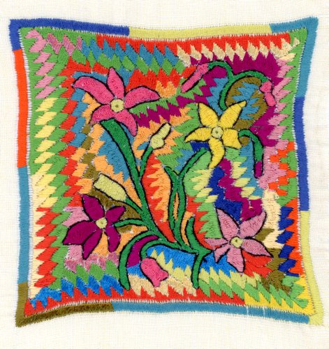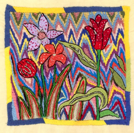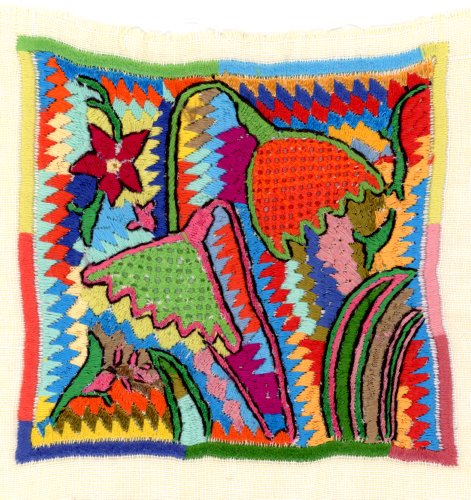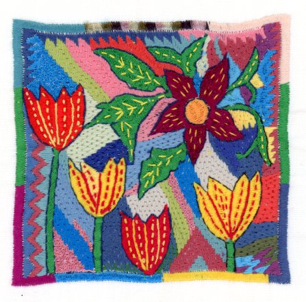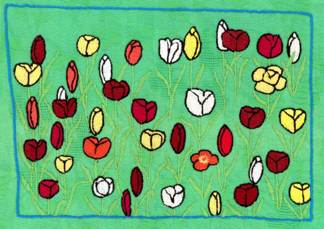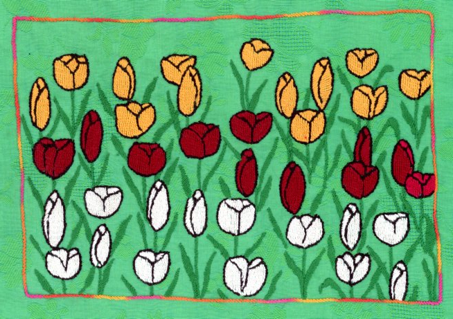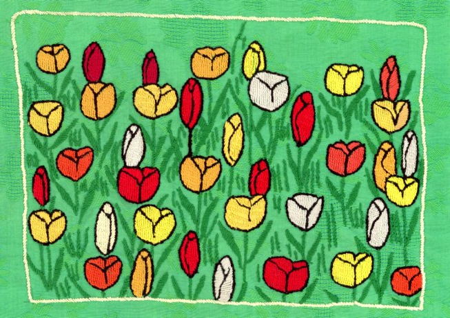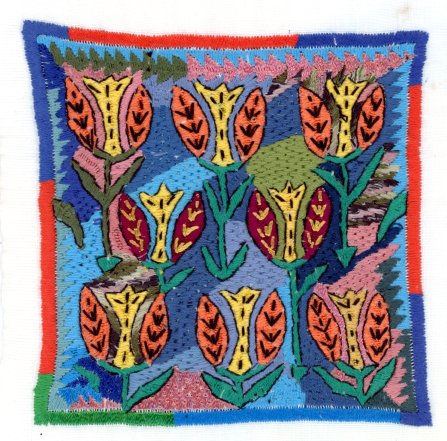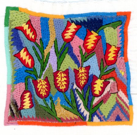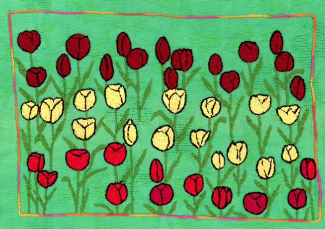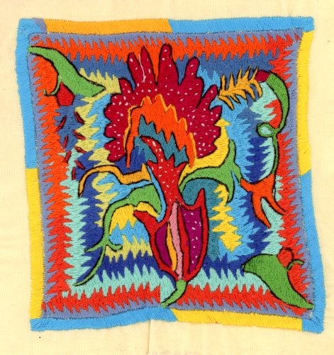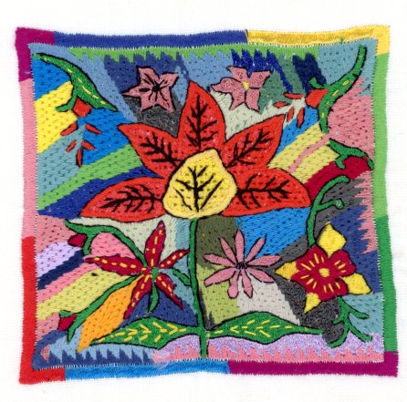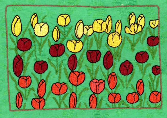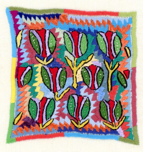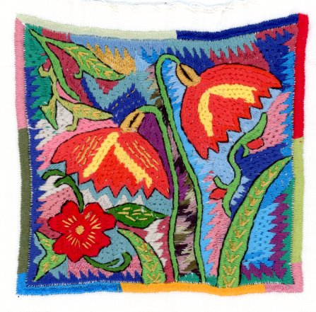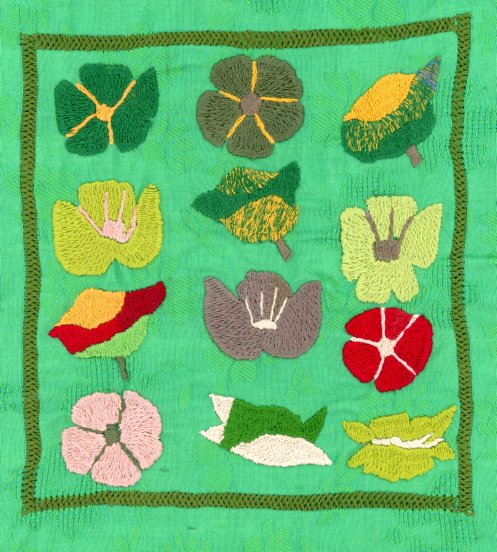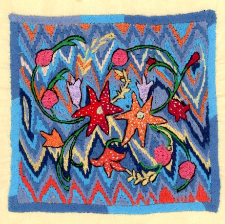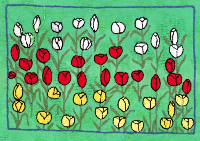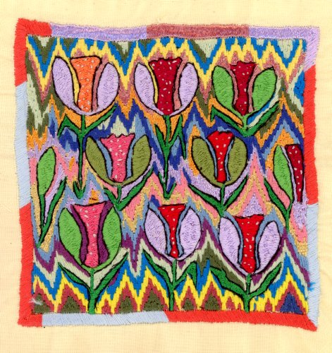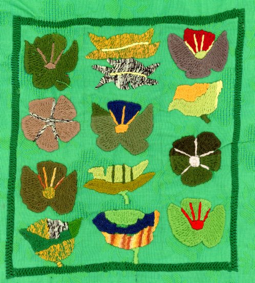 Habituellement, les femmes brodent librement, elles inventent leurs propres motifs. Dans le cas particulier de ces broderies, elles les ont créées différemment. J’ai distribué à quelques brodeuses sélectionnées des photos d’œuvres textiles de l’artiste allemande Elsbeth Nusser-Lampe (vues de pièces entières ou détails) par Elsbeth Nusser-Lampe.