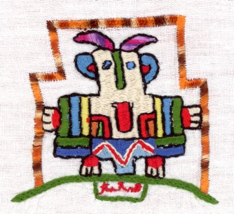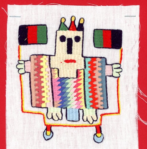 J’ai présenté la broderie d’Edith à certains brodeuses et je les ai appelés djinns – ces êtres connus dans de nombreuses cultures comme de bons ou de mauvais esprits. La croyance aux djinns est antérieure à l’introduction de l’Islam, qui tolère cette croyance originelle encore présente aujourd’hui.