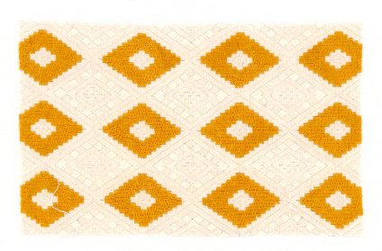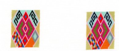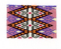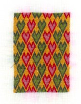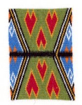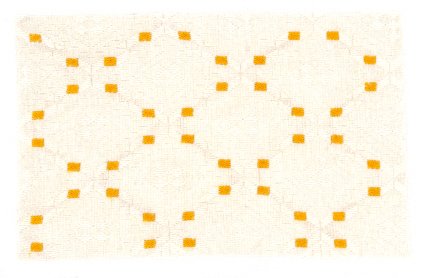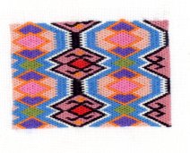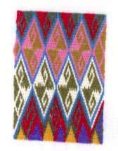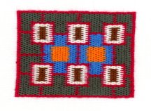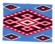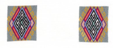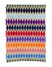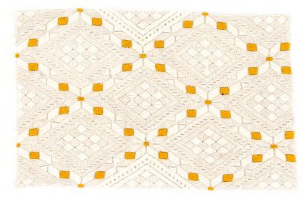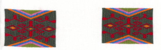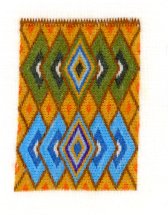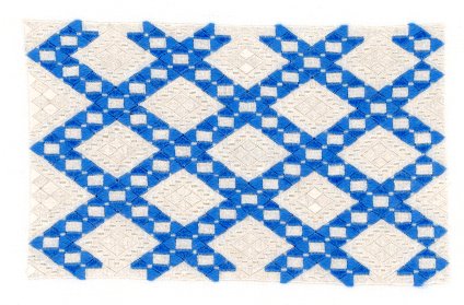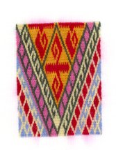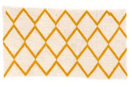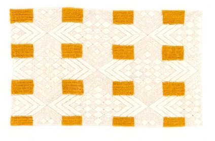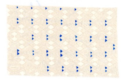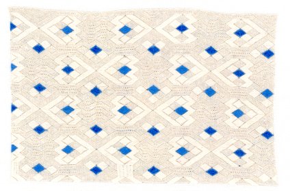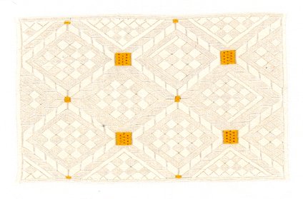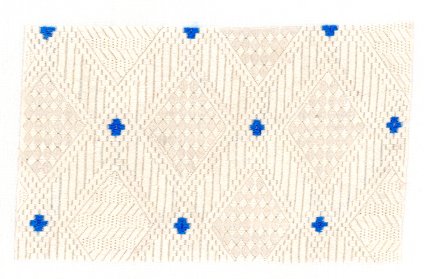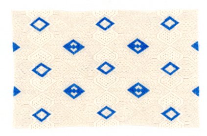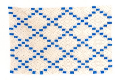 Les grands rectangles, en Khamakdusi, blancs, blancs/bleus, blancs/jaunes mesurent 8 x 13 cm.