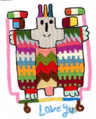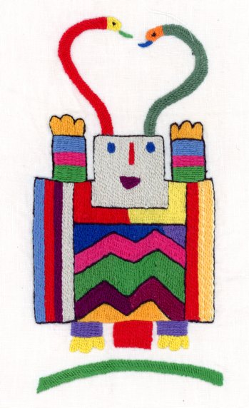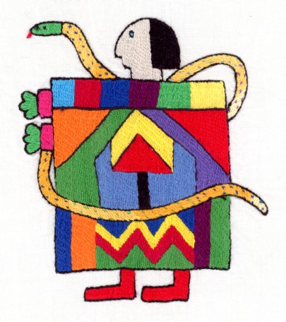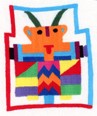 Ich bat die Stickerinnen, ihre eigenen Djinns darzustellen, obwohl der Begriff abstrakt ist. Die erste Lieferung bestand aus Kopien von Ediths Stickereien, woraufhin ich die Anfrage stoppte und die Erwartung erneut erklärte. Danach entstanden persönliche Interpretationen der Djinns.